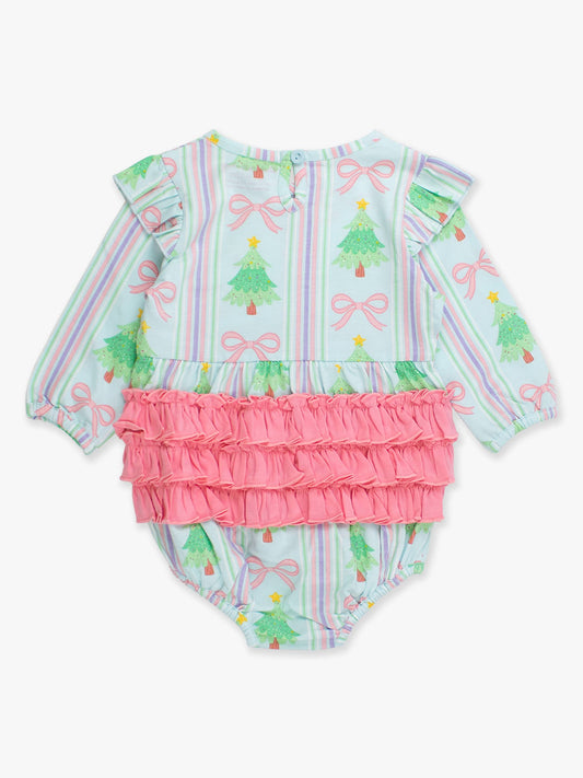 RuffleButts Baby Girls Merry Bow Dreams Knit Long Sleeve Flutter Bubble Romper