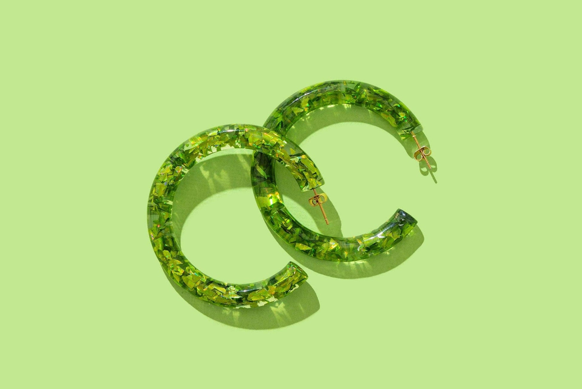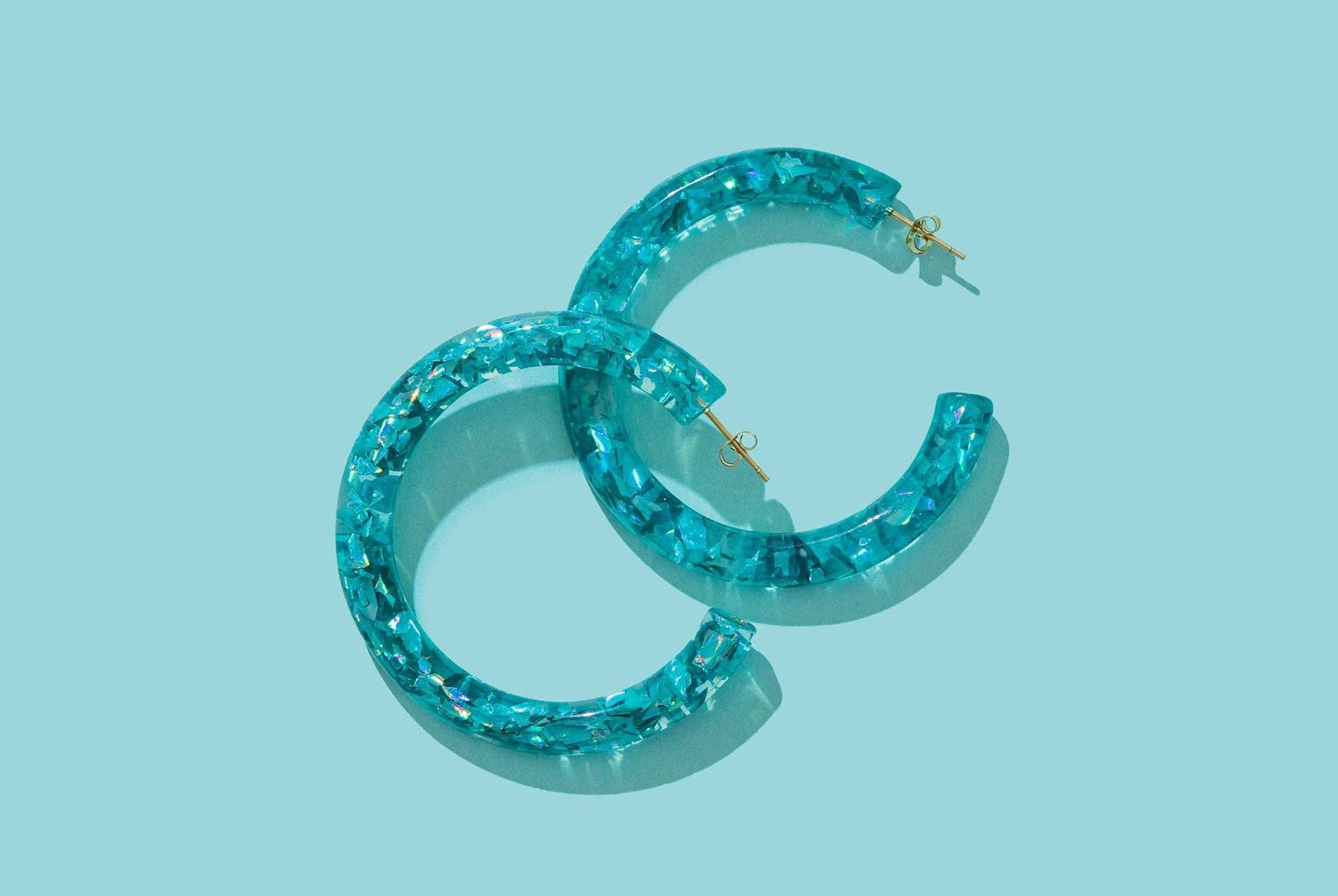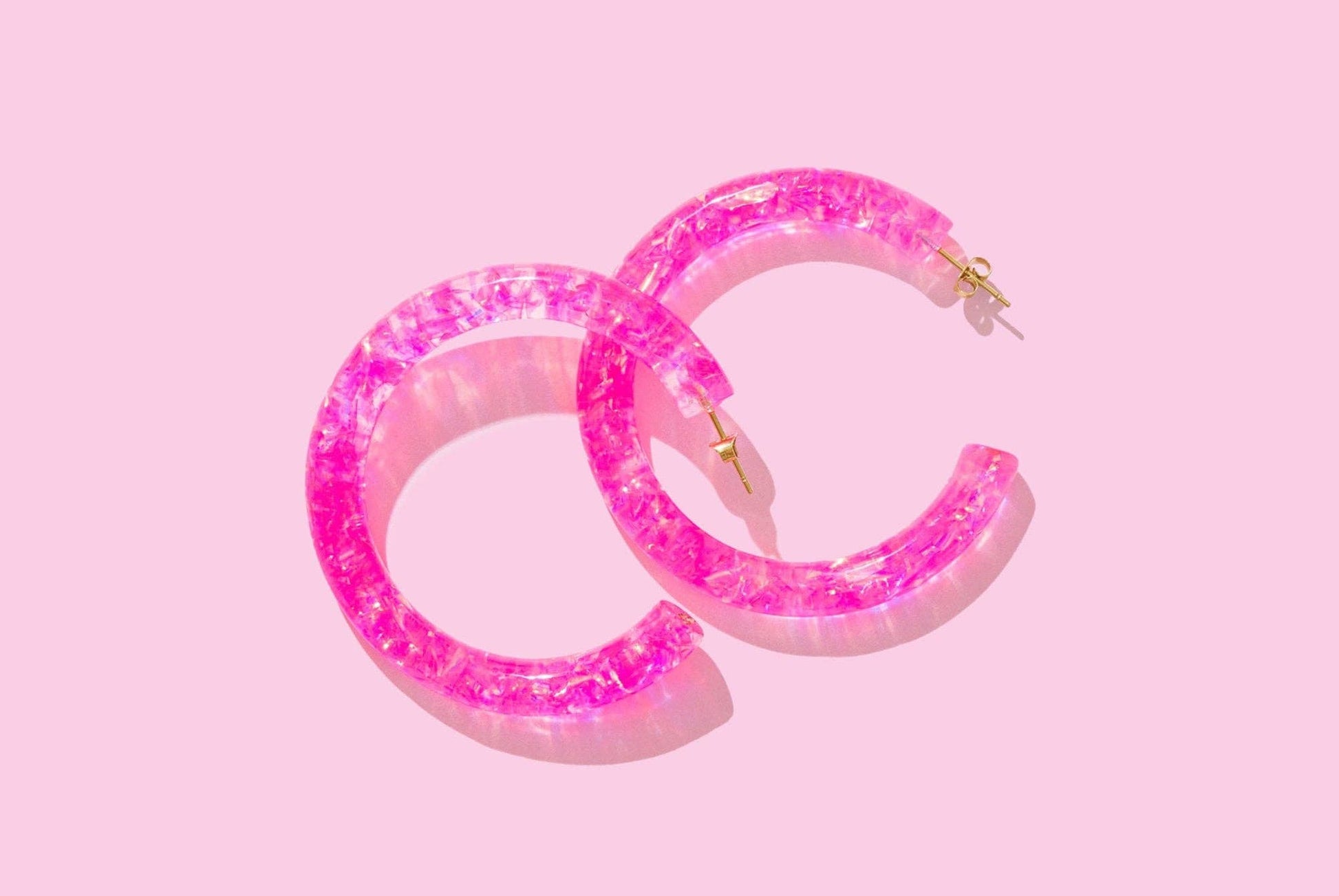*Each confetti piece is meticulously hand-sprinkled into the resin, ensuring a no-shedding experience. Thanks to this distinctive process, each hoop becomes a one-of-a-kind masterpiece, making every piece as unique as the individual you're gifting it to. Details * 32 pairs of earrings * 1 display * Earring size: 2.125" diameter * Display size: 9.25" x 8" x 2" * Confetti-filled resin hoop * 18k gold plated posts and pins * Surgical stainless steel * Hypoallergenic * Lightweight * Nickel and lead free *